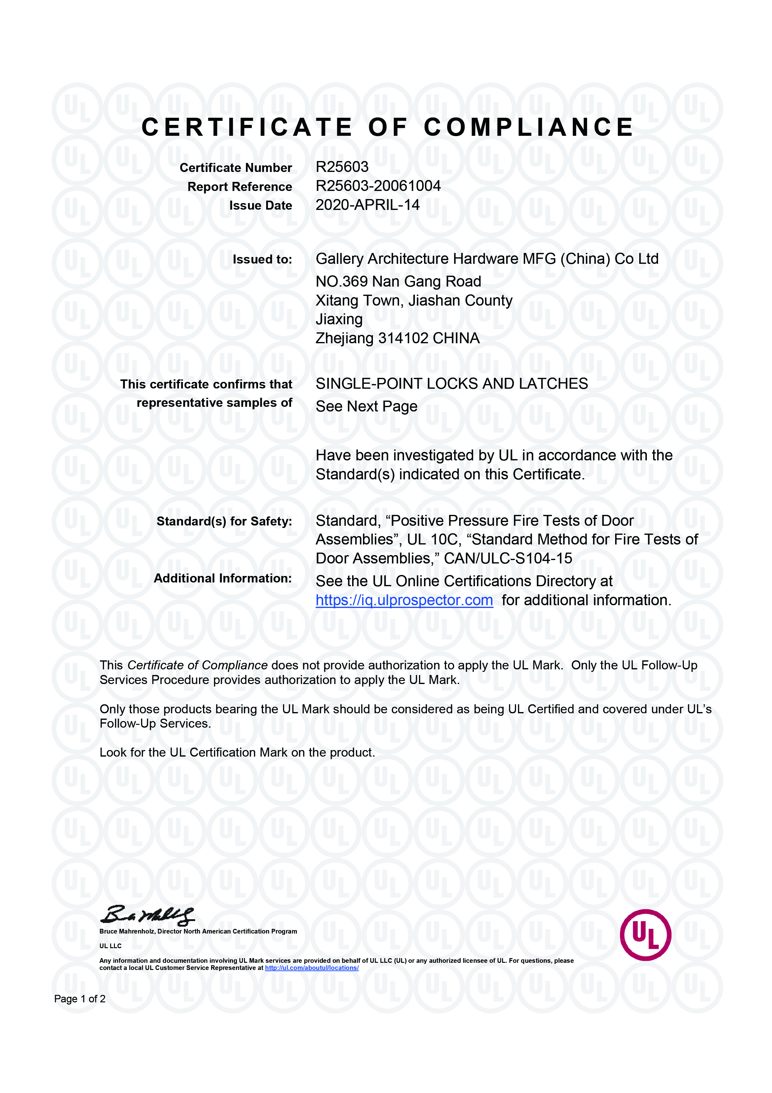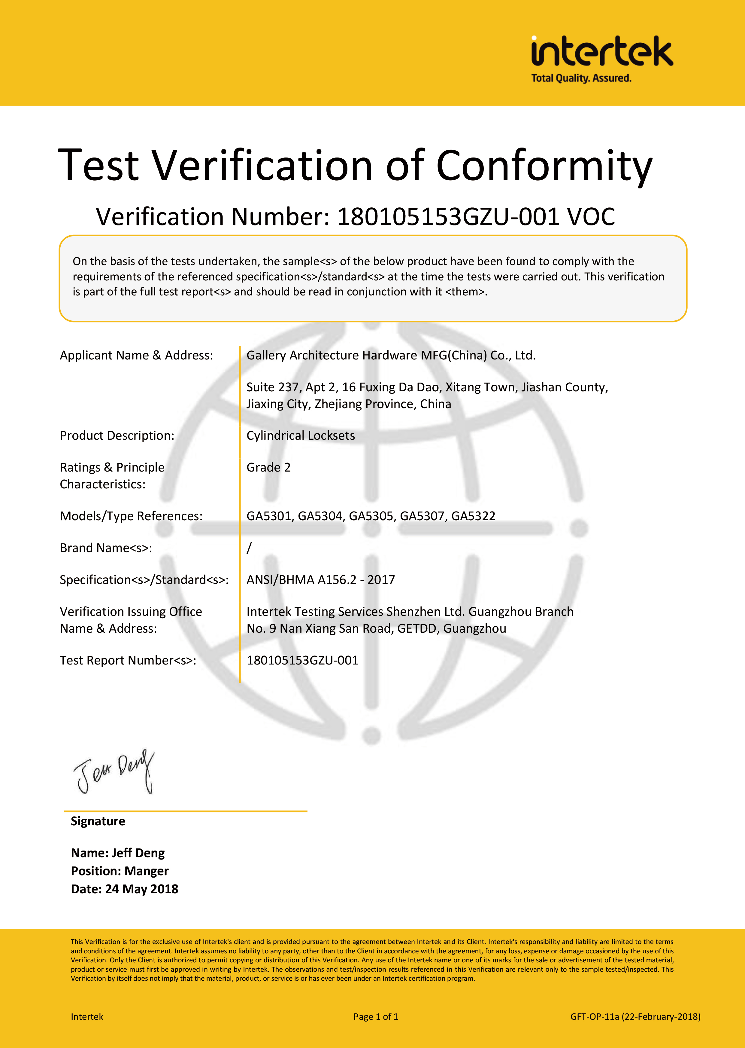 浙江堅迪五金制造有限公司始建于 1995 年。自 2003 開始,公司致力于高標準商業(yè)鎖的研發(fā)工作,并于 2006 及 2007 年,8700 插芯鎖系列獲得美國國家標準 ANSI A 156.13-2005 一級、ANSI A 156.2-2003 二級和美國 UL 10C3 小時防火測試認證。自 1998 年以來,公司不斷提升產品和客戶服務品質,并獲得了 ISO 9001 的認證。